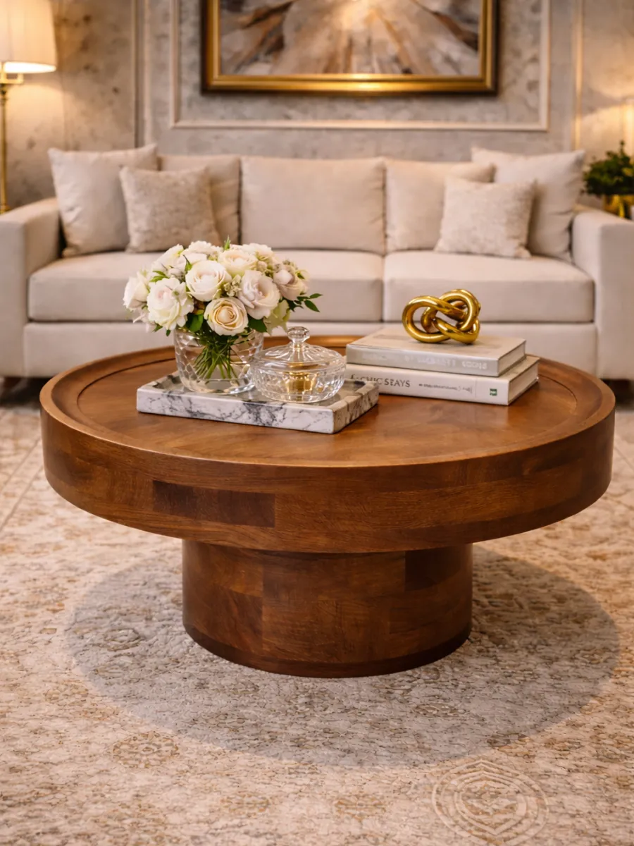This table stands out because of its strong visual character and premium detailing. Most regular center tables look simple and repetitive, but this design has a bold identity. The smooth curved top, architectural base, and deep wood tone together create a furniture piece that feels exclusive, sophisticated, and memorable. It offers the kind of look usually seen in luxury interiors and professionally styled homes. For customers who want something different from standard square or basic plain tables, this is a much more attractive and distinctive option.
