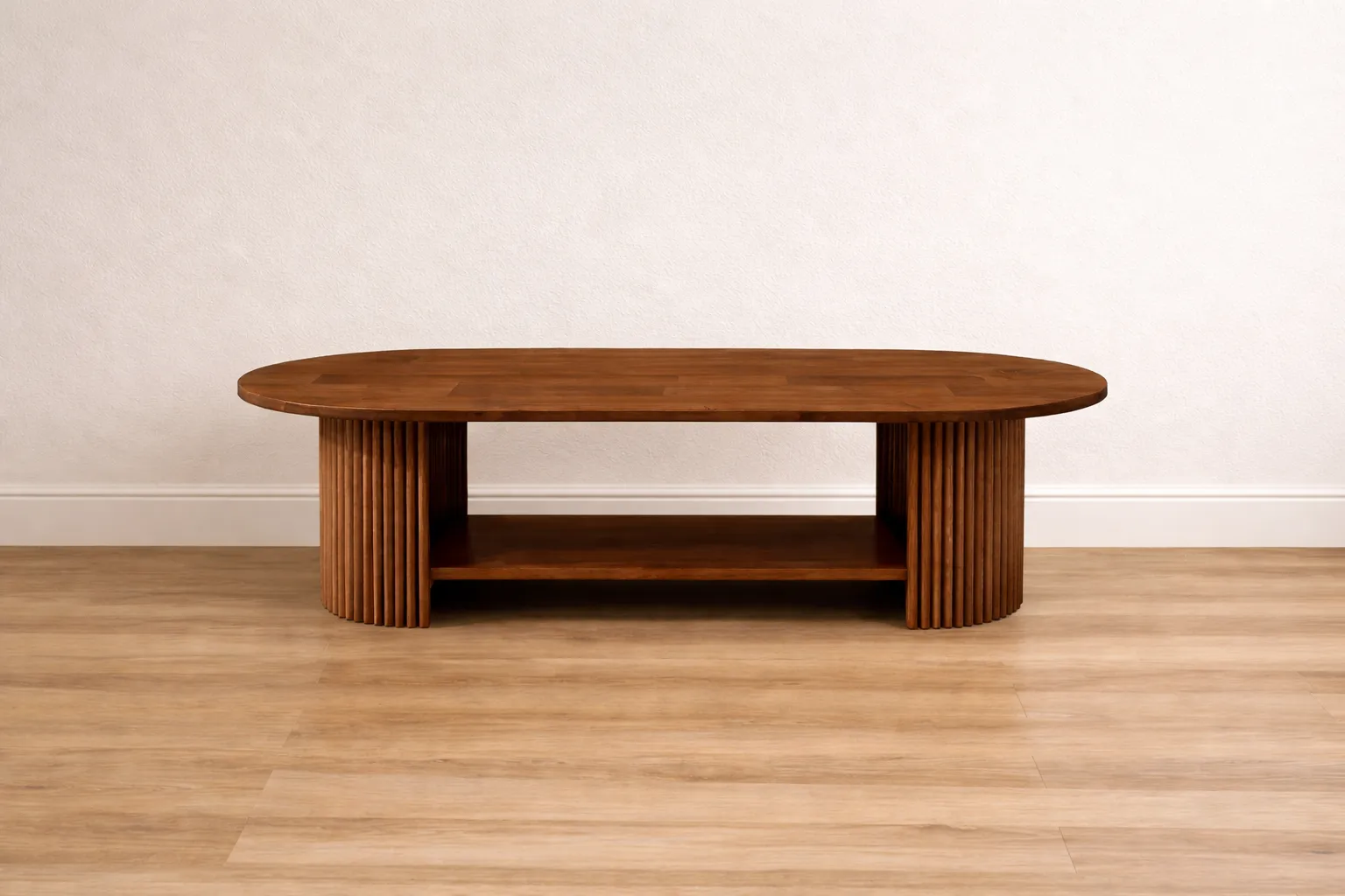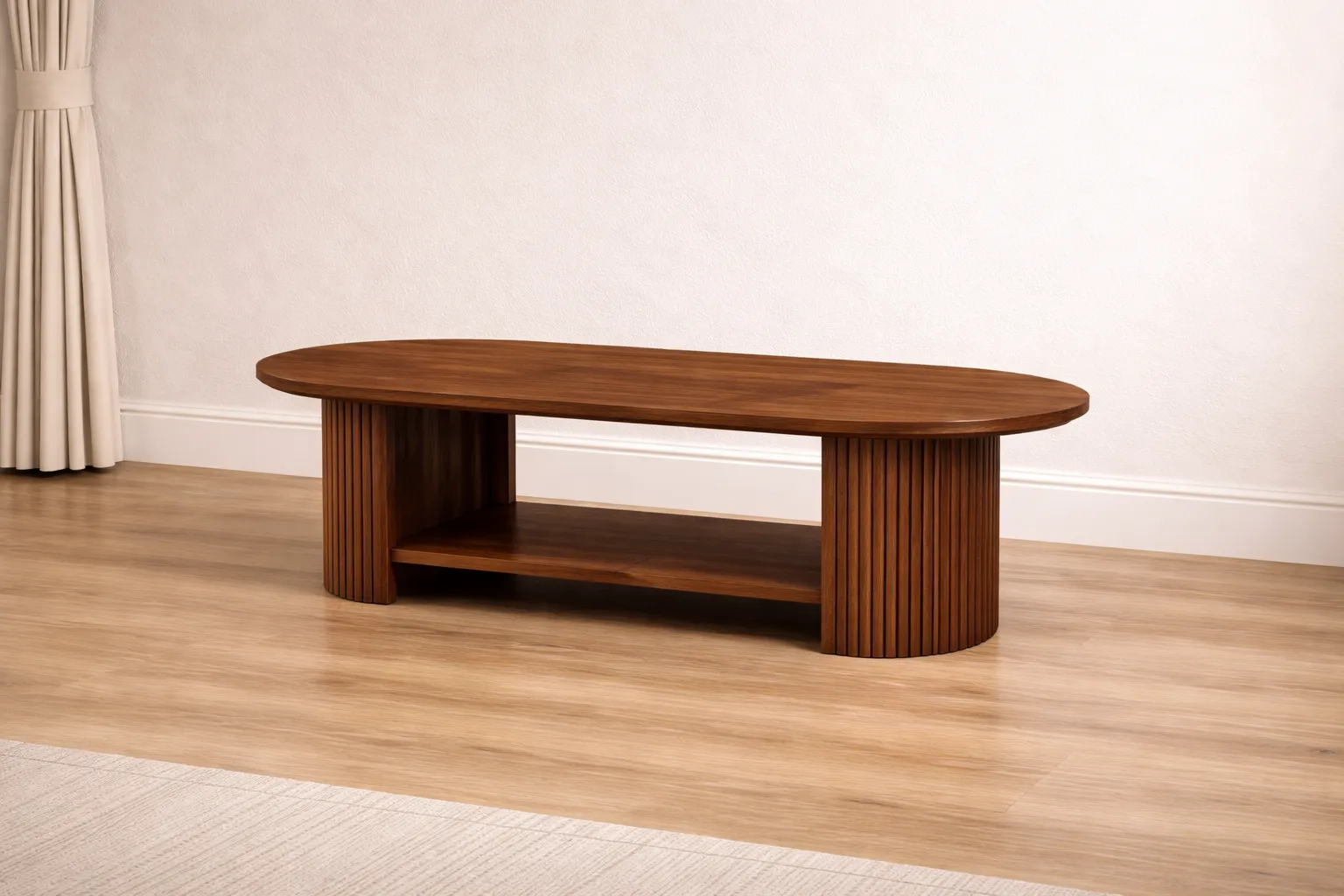 Premium Wooden Coffee Table | Modern Oval Center Table with Open Storage Shelf | Solid Wood Handcrafted Luxury Table for Living Room | Stylish & Durable Home Furniture