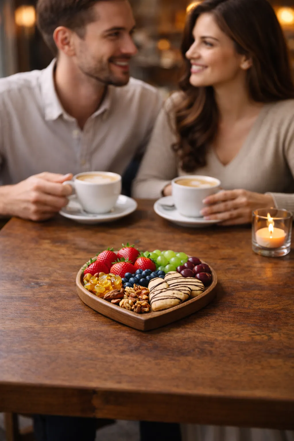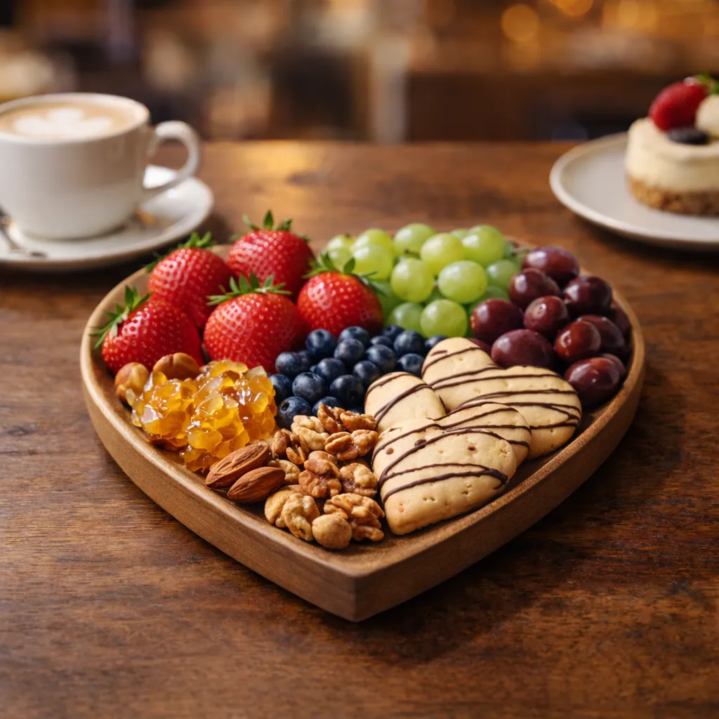 - Heart Shape Wooden Serving Plate – Natural Wood Snack & Dessert Tray for Cafe, Hotel & Home, Stylish Fruit, Dry Fruit & Snacks Serving Platter