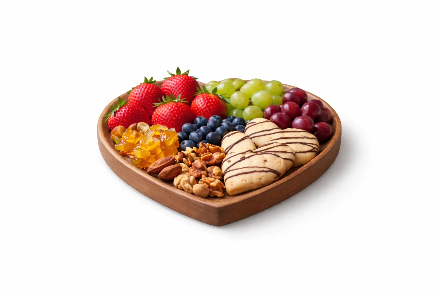 Heart Shape Wooden Serving Plate – Natural Wood Snack & Dessert Tray for Cafe, Hotel & Home, Stylish Fruit, Dry Fruit & Snacks Serving Platter