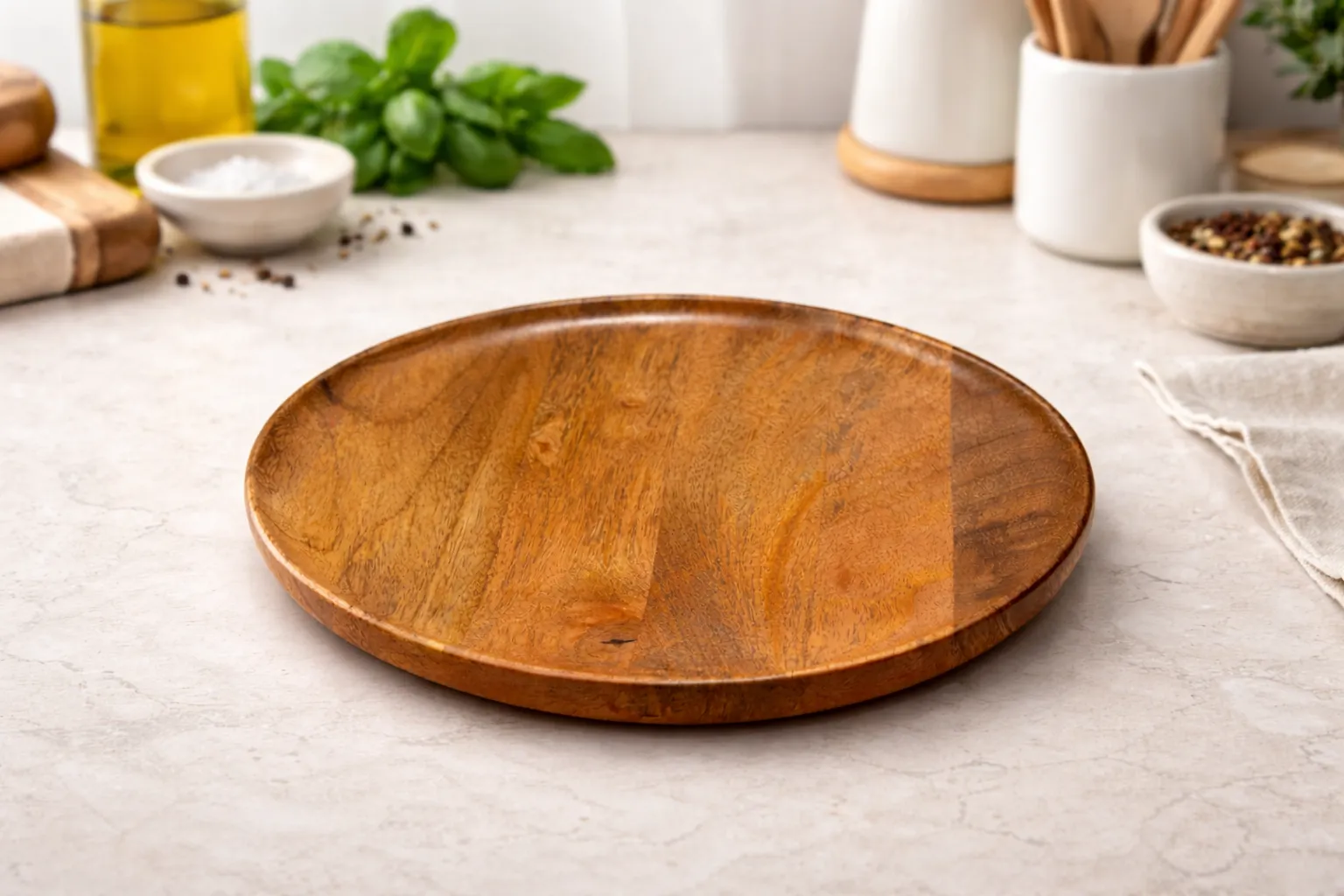 Wooden Serving Plate – Natural & Eco-Friendly Tableware Upgrade your dining experience with this premium wooden serving plate, crafted from high-quality natural wood. Designed for durability and style, this plate adds a warm and elegant touch to your table setting. Made from strong and food-safe wood, it is perfect for serving snacks, fruits, dry fruits, desserts, bread, and appetizers. The smooth finish and natural wood grain give it a unique and attractive look, making it suitable for both everyday use and special occasions. This wooden plate is lightweight yet sturdy, crack-resistant, and long-lasting. It is an eco-friendly and sustainable alternative to plastic and disposable plates. Key Features: Made from 100% natural wood Durable and long-lasting Smooth polished finish Eco-friendly and reusable Ideal for home, restaurants, parties, and gifting Care Instructions: Wipe with a dry or damp cloth. Do not soak in water or place in dishwasher. Add this stylish and durable wooden plate to your kitchen collection today!