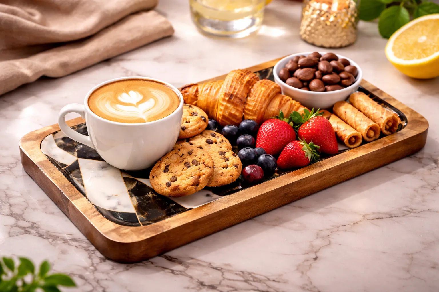 Upgrade your serving style with the elegant Bhanwar Woods Premium Marble Design Serving Tray. Crafted with a strong wooden base and a stylish black & white marble-pattern inlay, this tray brings a perfect blend of durability and luxury. Ideal for serving tea, coffee, snacks, or desserts, it enhances every moment—whether daily use or special occasions. Its smooth finish, sturdy edges, and spacious design ensure easy handling and long-lasting performance. Perfect for home, kitchen, café, or festive gatherings, this tray also adds a premium touch to your décor. A great choice for gifting or elevating your dining experience with style and sophistication.